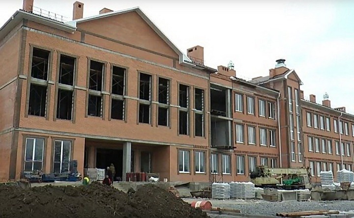 Строящаяся школа на ул. Гагарина весной. Скриншот с видео ТК «Пульс»
