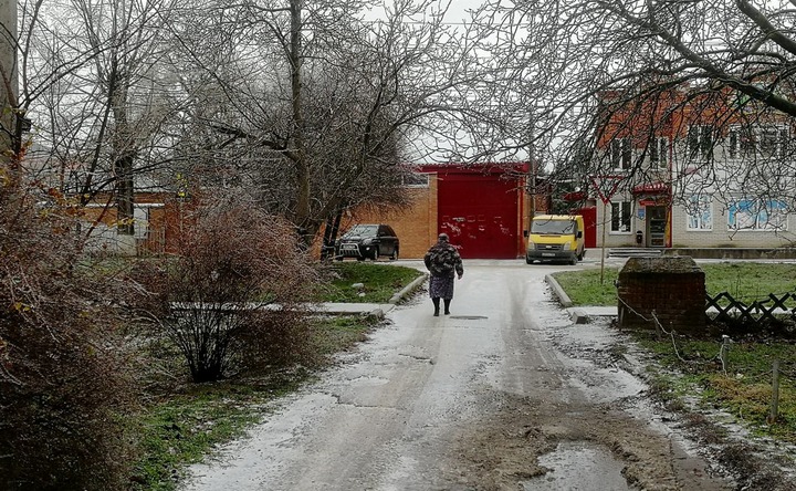 В этой непростой задаче им помогли газоны, на них оказалось не так скользко. А там, где их нет, азовчане удерживались за счёт веток деревьев.