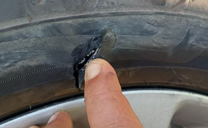 Торчащая из дороги арматура пробила несколько скатов. Фото читателя ruffnews.ru