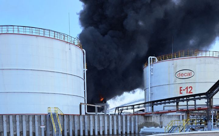 Пожар на нефтебазе до сих пор не утих. Фото ruffnews.ru