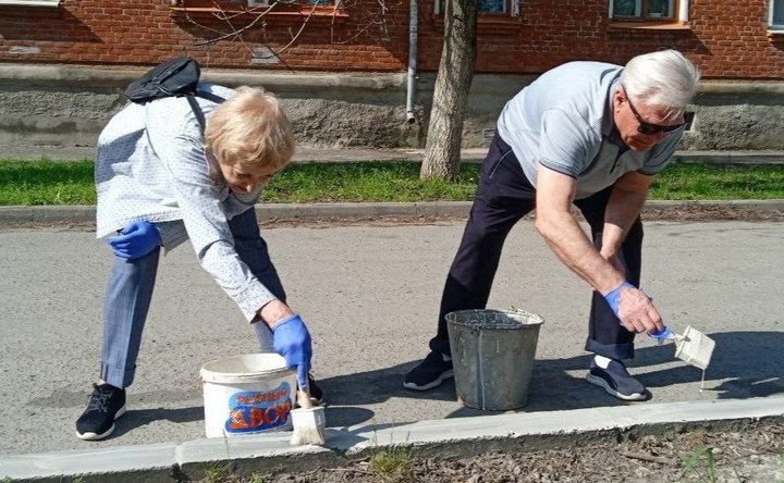 Покраска бордюрного камня. Фото администрации Азова