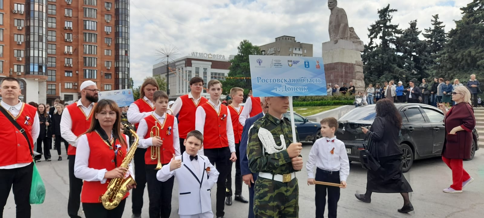 На главной площади перед городским Дворцом Культуры сводный духовой оркестр исполнил гимн России под руководством президента Российского духового общества, дирижёра Михаила Брызгалова.