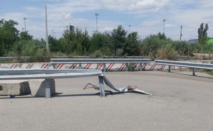 Сломанное барьерное ограждение на Черноморском. Фото «Подслушано в Азове…»