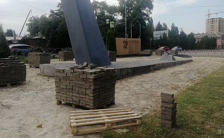 Площадь около стелы уже очищена от старой плитки. Фото ruffnews.ru