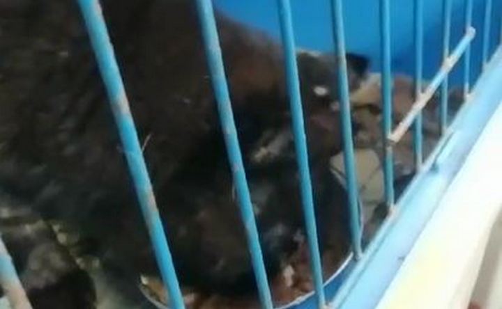 Кот начал есть. Скриншот с видео волонтёров приюта «Феникс»