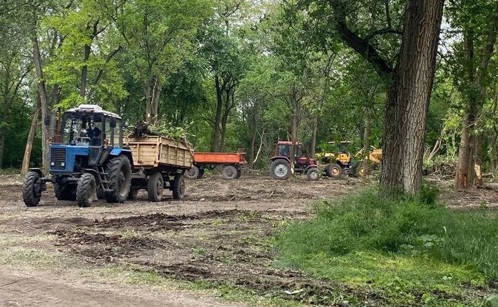 В поселке Новомирском благоустраивают парк. Фото t.me/azovskiyrayon