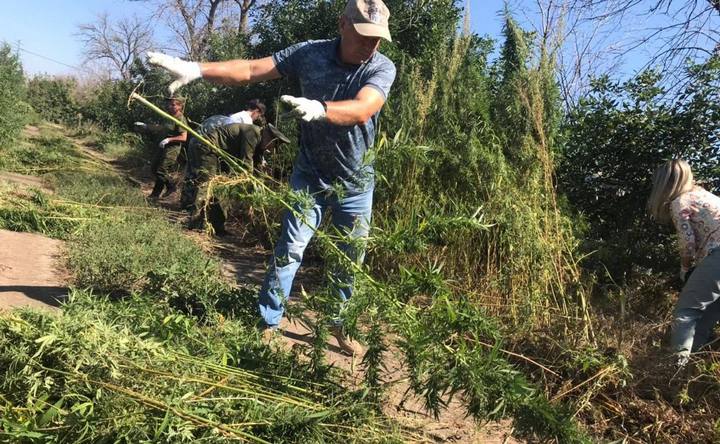 Сотрудники отдела сельского хозяйства администрации Азовского района во время рейда нашли и уничтожили 180 кустов дикорастущей конопли общим весом