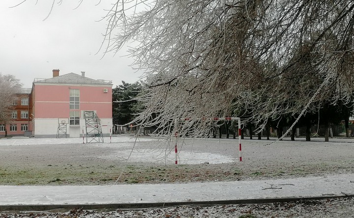 Двор школы №9 в Азове зимой. Фото ruffnews.ru