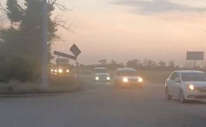 Завесы пыли на въезде в Азов. Скрин с видео А. Дзюбенко