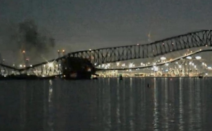 В США в Балтиморе (штат Мэриленд) обрушился мост Фрэнсиса Скотта Ки над рекой Патапско, после того, как в него врезалось грузовое судно.