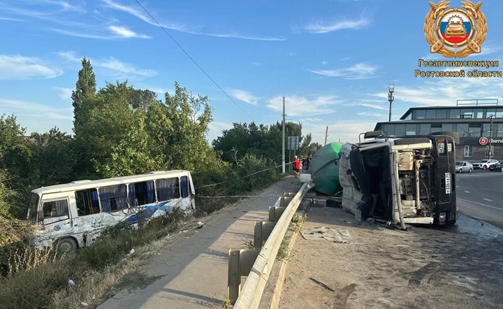 Вечером 1 августа под Новочеркасском попали в ДТП большегруз и пассажирский «ПАЗ». 8 человек получили травмы, пятерых из них доставили в больницу.