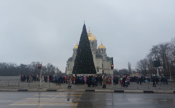 У подножия Вознесенского собора устроили праздник, на который пригласили воспитанников городских центров помощи детям. На площади ребят встречали Дед Мороз и Снегурочка, а новочеркасские артисты порадовали их новогодними песнями и танцами. Завершился праздник большим хороводом вокруг новогодней ёлки — компанию детям составили сказочные персонажи.