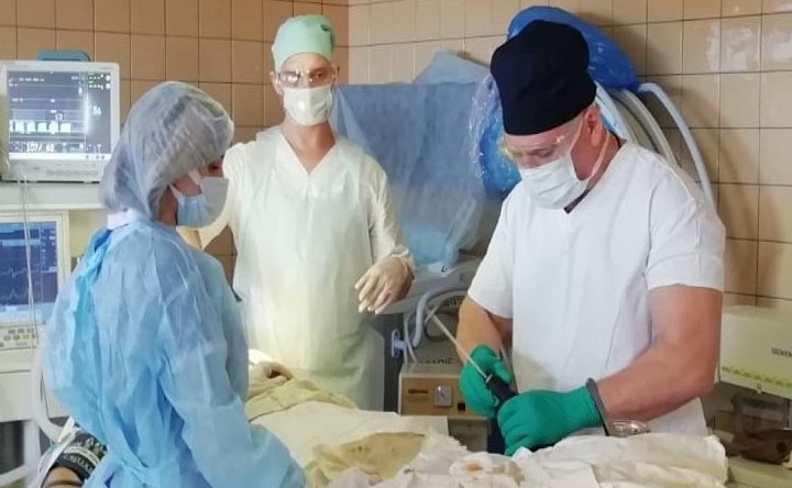 Главный врач новочеркасской БСМП Борис Гуркин вернулся из Донбасса, где в качестве добровольца неделю помогал местным медикам оперировать раненных бойцов российской армии. Он работал в Луганске, в прифронтовой зоне в качестве травматолога, вместе со своими коллегами: заместителем Александром Буцевым и травматологом-ортопедом Дмитрием Стеблиным.