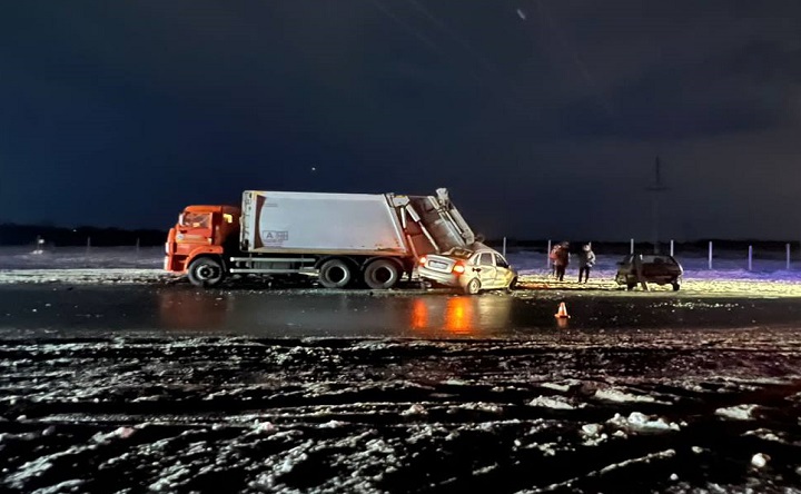 Как рассказали в ГИБДД, грузовой автомобиль «КамАЗ», перевозящий мусор, поломался. Его водитель остановился на обочине и выставил знак аварийной остановки. В 5:40 утра по трассе на большой скорости мчалась Lada Kalina. 23-летний водитель легковушки не справился с управлением, машину занесло, после чего она вылетела на обочину и врезалась в припаркованный грузовик.