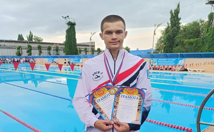 Юный пловец из Новочеркасска Евгений Антоненко завоевал золотую и серебряную медали чемпионата Ростовской области по плаванию.