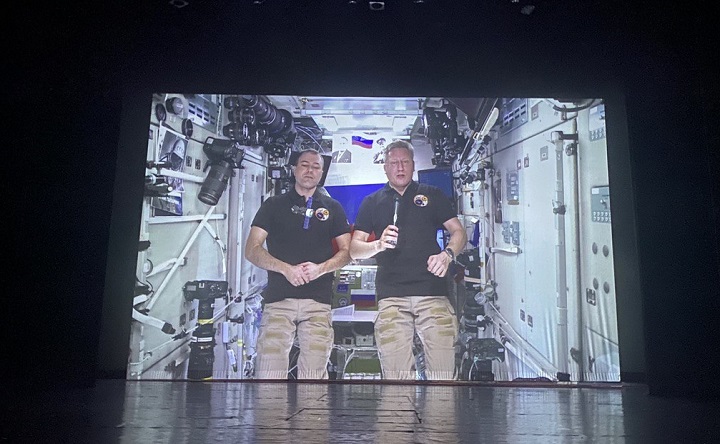 Космонавты поздравляют коллектив Центра. Фото ruffnews