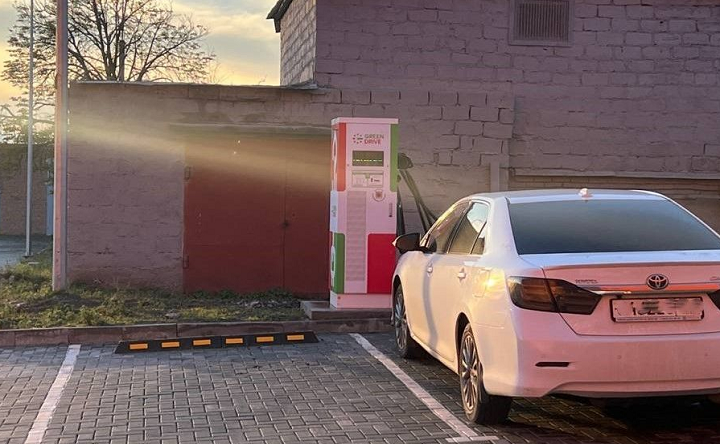 Новое оборудование, для зарядки электрических автомобилей установили на западной парковке торгового центра «Батон».