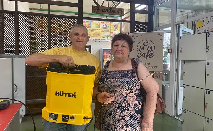 В течение недели авторы фотографий цветников, набравших наибольшее количество лайков, получали свои подарки, а 4 августа главный приз – опрыскиватель Huter от магазина «Мир строительных материалов» передали создателю самого красивого палисадника Новочеркасска Валентине Гириной. Подарок её матери, Галине Самохваловой, которая помогает дочке выращивать цветы, вручил администратор магазина Сергей Лопаткин.