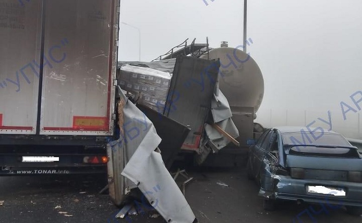 По предварительным данным, причиной аварий стала плохая видимость на автодороге из-за густого тумана.