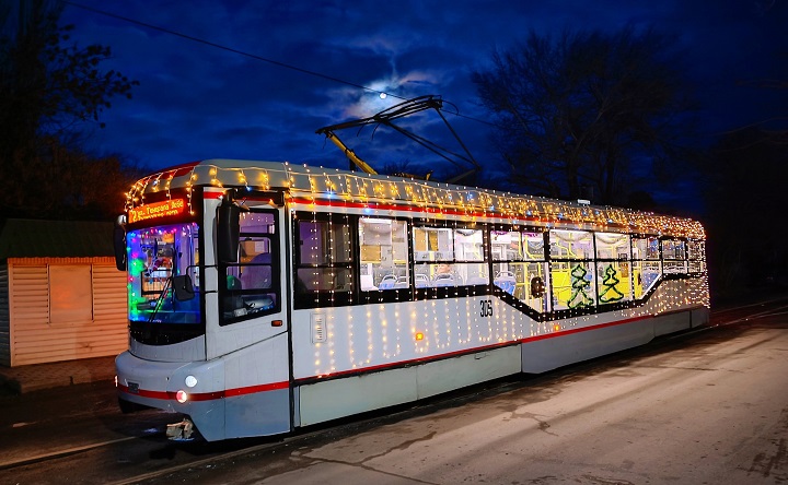 Напомним, «Новогодний трамвай» вышел на линию 21 декабря. Украшенным сверкающими гирляндами, мишурой и ёлочными шарами вагоном управляет Дед Мороз, а помогает ему Снегурочка.