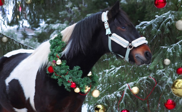 Лошадь возле ёлки. Фото /vk.com/nvch_horse