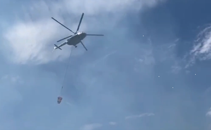 Тушение пожара с вертолета. Скрин видео пресс-службы МЧС Ростовской области