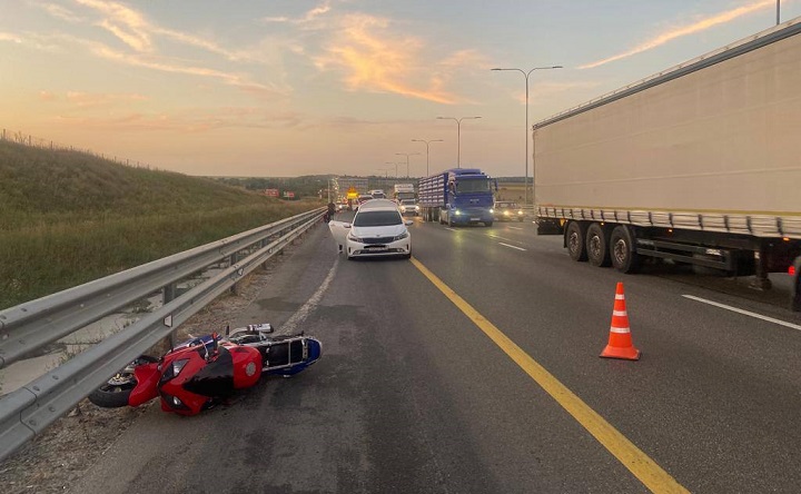 3 сентября около 18 часов на автодороге М4 «Дон» в Октябрьском районе 25-летний водитель, управляя мотоциклом Honda CBR, двигаясь из Шахт в Новочеркасск, столкнулся с автомобилем Кia.