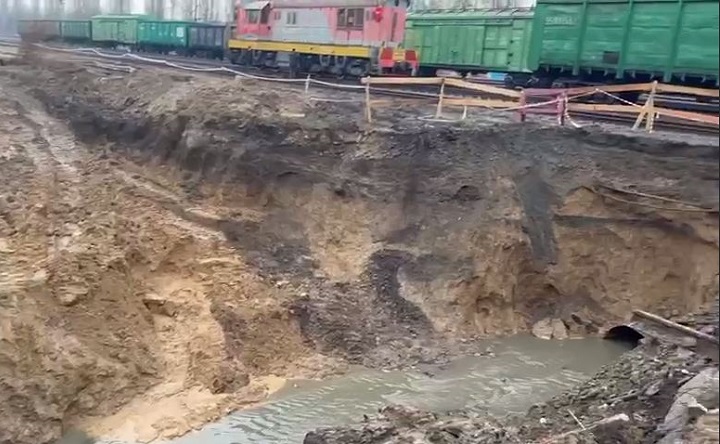 Как сообщил министр ЖКХ Ростовской области Сергей Сизиков, обвал участка коллектора под железнодорожными путями не ограничивает движение железнодорожного транспорта.