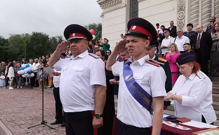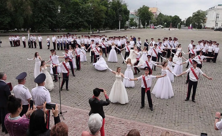 23 мая последний звонок прозвенел не только для школьников Новочеркасска, но и для учеников Донского императора Александра III казачьего кадетского корпуса. Прощаясь с детством, выпускники станцевали вальс у подножия Вознесенского собора.