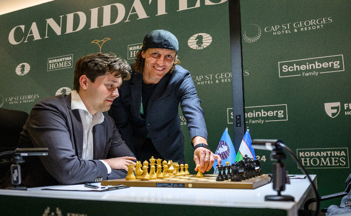 Первый ход Давида Луиса на доске Андрея Есипенко. Фото Михаила Валуша, ФИДЕ