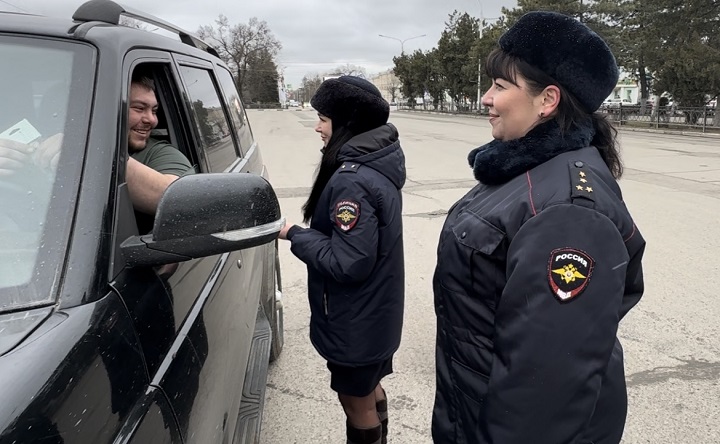 В преддверии Дня защитника Отечества девушки-полицейские поздравили с праздником новочеркасских мужчин-водителей.