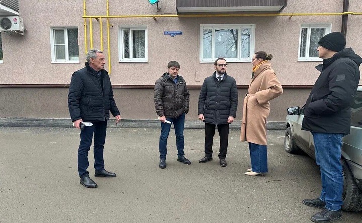 Сергей Сизиков возле дома на улице Просвещения, 106А. Фото официальный сайт правительства Ростовской области