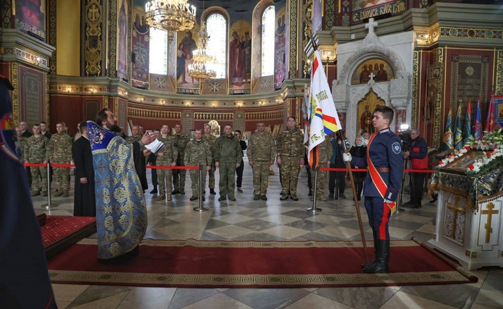 В Новочеркасске бойцам отдельной роты БПЛА 150-й Гвардейской мотострелковой дивизии вручили ротный знак. На нём символы прославленного воинского подразделения и Войска Донского.