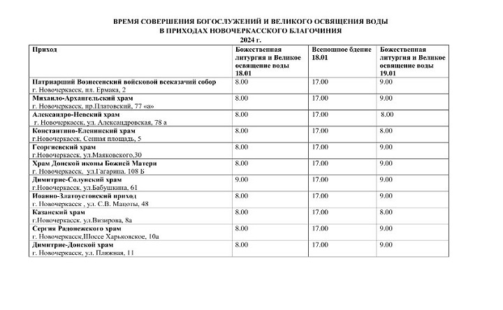 Расписание богослужений в храмах Новочеркасска 18 и 19 января
