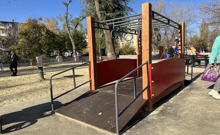 В Новочеркасске 1 ноября открыли отремонтированный детский городок в микрорайоне Донском. На площадке появились игровой городок для ребят с ограниченными возможностями здоровья и новые молодые деревья.