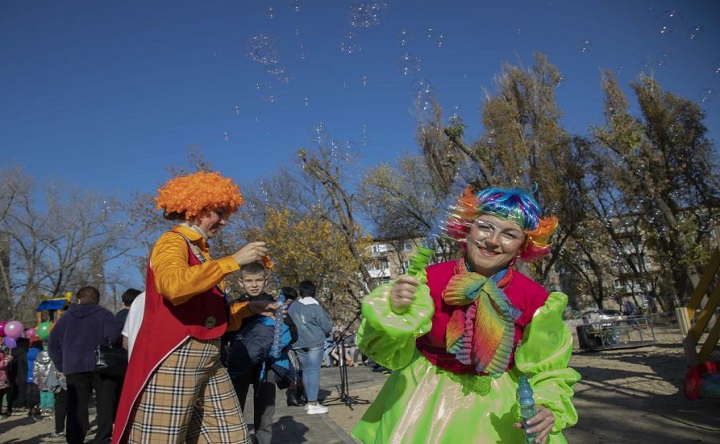 На открытии городка для маленьких жителей Донского устроили праздник. Для ребят выступили городские артисты с вокальными и танцевальными номерами, также юных горожан развлекали аниматоры.