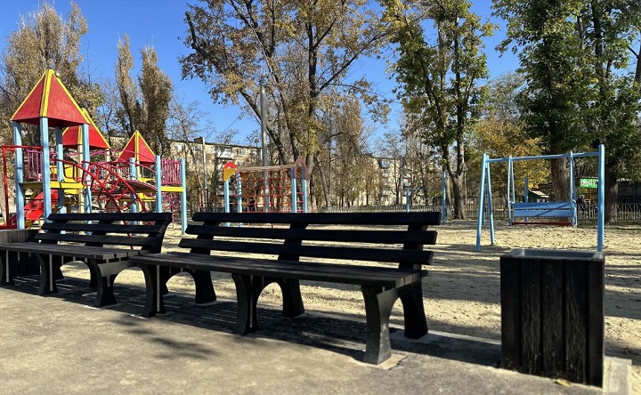 После ремонта площадка преобразилась — здесь появились песочница, качели, карусели, лабиринт, спортивное оборудование с кольцами и канатом, новые скамейки и урны. Теперь играть здесь смогут и особенные ребята. Для детей с ОВЗ установили специальный игровой комплекс. Также на территории городка посадили 20 молодых саженцев лип.