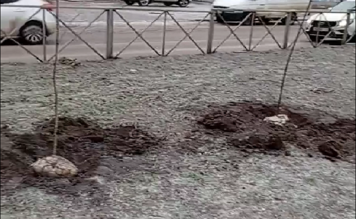 Саженцы деревьев на Баклановском проспекте. Скриншот видеозаписи Александра Малышко
