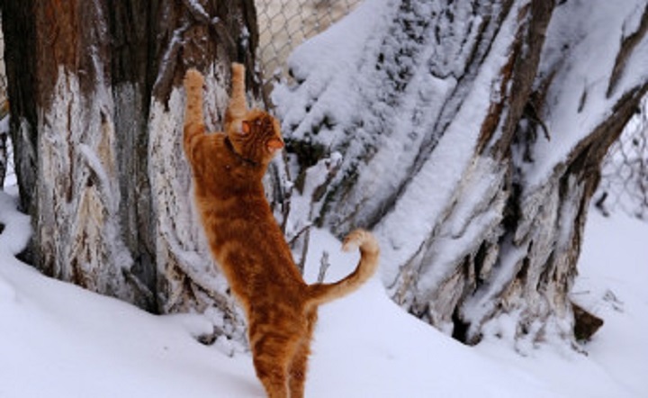 Кот на снегу. Фото Никиты Сиденина