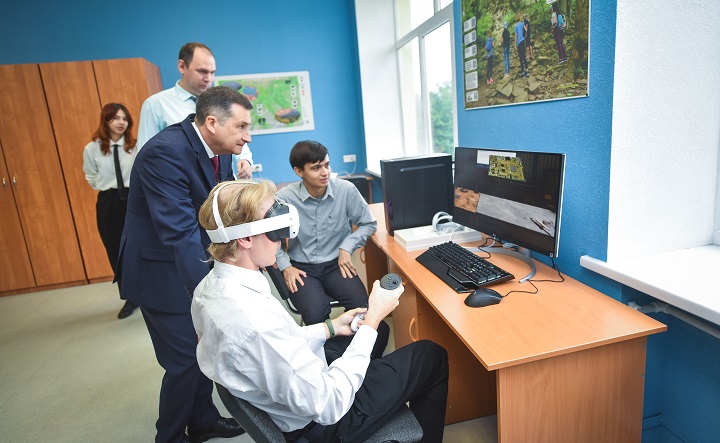 «Было закуплено четыре комплекта со шлемами виртуальной реальности. Как раз задача проектного офиса — научиться создавать собственные приложения и использовать такую технику в учебной деятельности», — пояснил он.