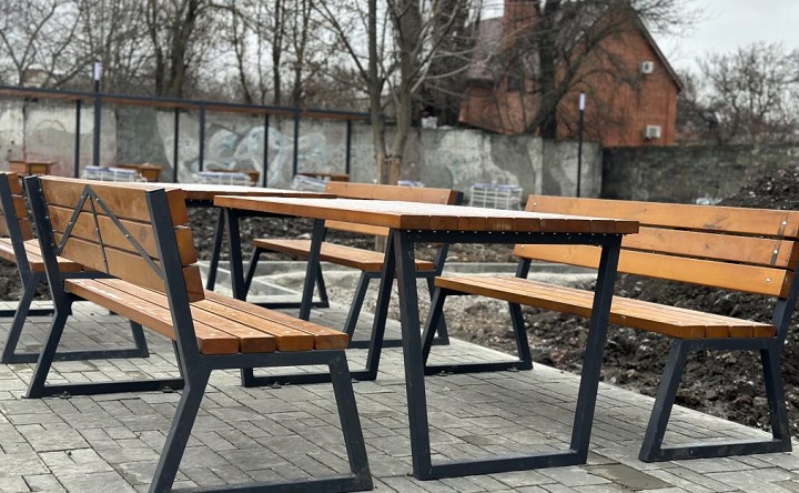 В «Казачке» также подготовили основание для обустройства многофункциональной спортивной площадки и уже установили новые креативные лавочки в форме пазлов. Сейчас рабочие укладывают в парке тротуарную плитку.