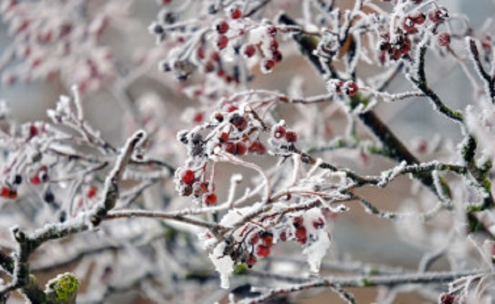 Замерзшие ягоды на дереве. Фото Никиты Сиденина