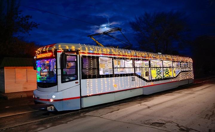 Новогодний трамвай. Фото из архива МУП «ГЭТ»