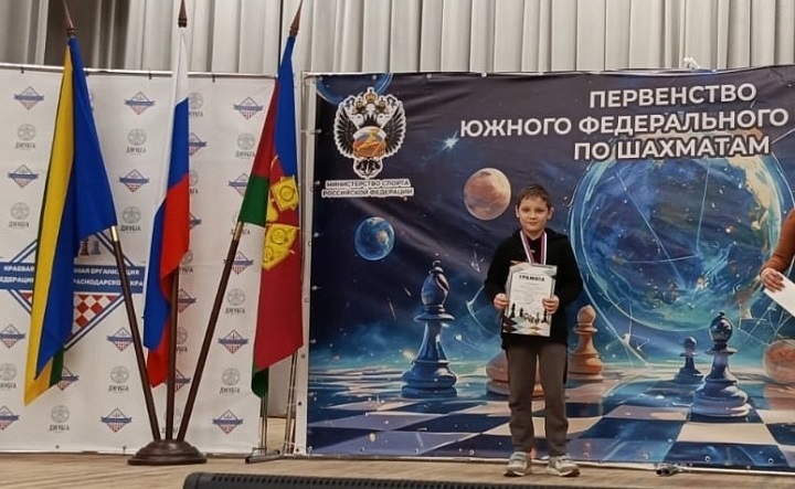 В посёлке Джубга Краснодарского края завершилось первенство Южного Федерального округа (ЮФО) по шахматам. Новочеркасец Даниил Погорелов в категории мальчиков до 13 лет завоевал на нём серебряную медаль.