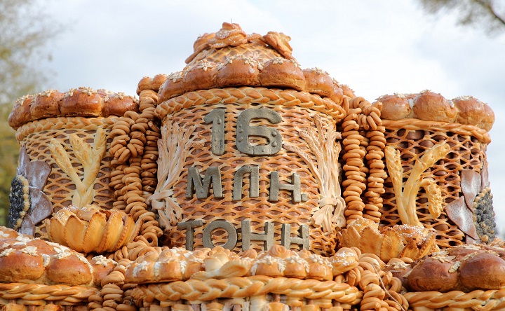Каравай, олицетворяющий рекордные 16 млн тонн урожая Ростовской области. Фото donland.ru