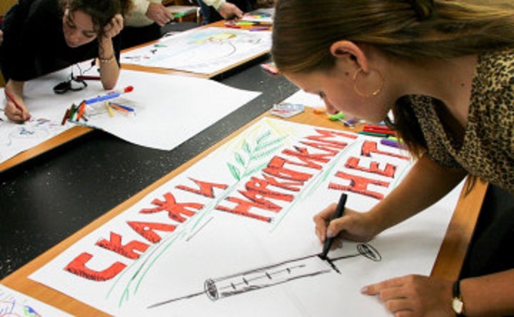 Изготовление социальной рекламы против употребления наркотиков. Фото Дмитрия Коробейникова, РИА Новости