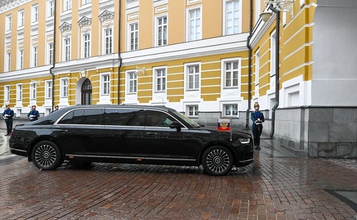 Обновлённый автомобиль кортежа президента РФ Aurus Senat перед началом церемонии инаугурации. Фото Алексея Бабушкина/ТАСС