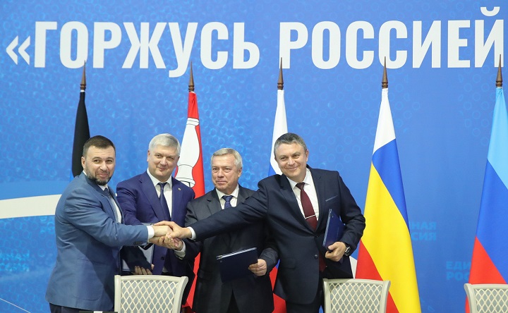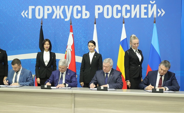 Главы четырёх регионов России — Ростовской, Воронежской областей, ЛНР и ДНР подписали соглашение о создании Содружества «Донбасс». Церемония его подписания прошла на территории исторического музейного комплекса «Самбекские высоты» в Неклиновском районе.