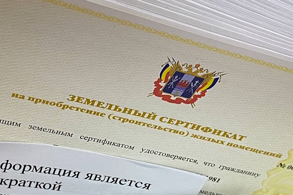 Земельные сертификаты на улучшение жилищных условий в Ростовской области получают многодетные семьи в трёх муниципалитетах области — в Ростове-на-Дону, Батайске и Таганроге. В этих городах нет свободных земель, которые можно было бы предоставить таких семьям.