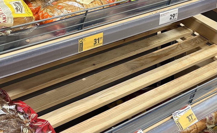 Пустая полка в хлебном отделе супермаркета. Фото ruffnews.ru